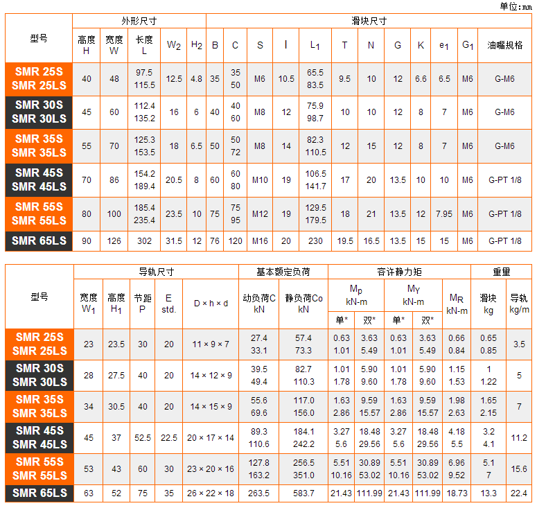 注*: 單:單滑塊 / 雙:雙滑塊緊密接觸